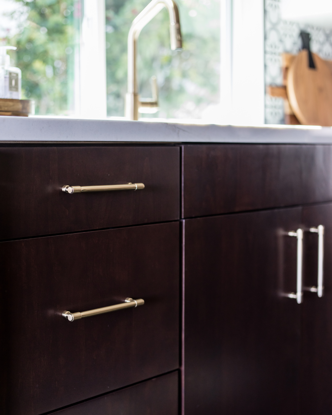 Mix & match hardware finishes for a visually appealing space.
