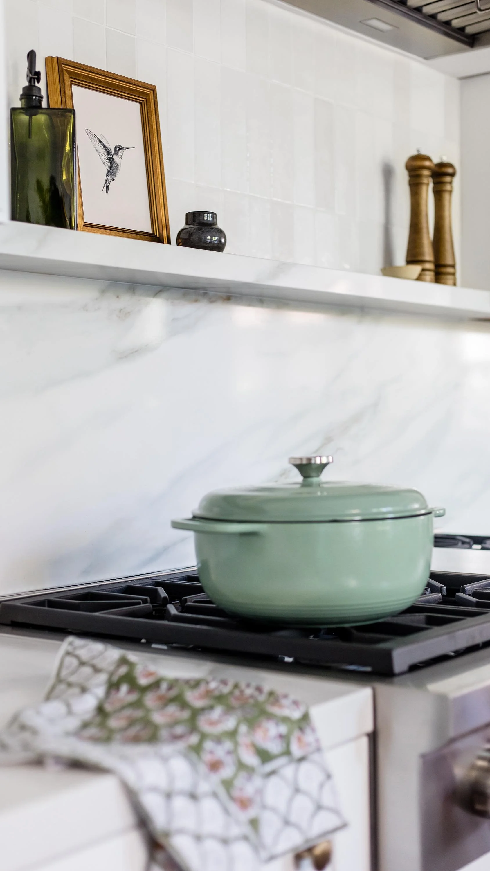 Herringbone tile takes center stage in this gorgeous guest bathroom. A custom vanity with stylish fixtures adds to its clean-lined, modern aesthetic.